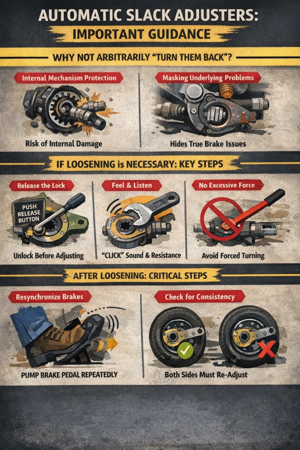 Que ce soit régleurs de jeu automatiques peuvent être desserrés manuellement (communément appelés « les retourner ») est un détail crucial dans l'entretien du véhicule.